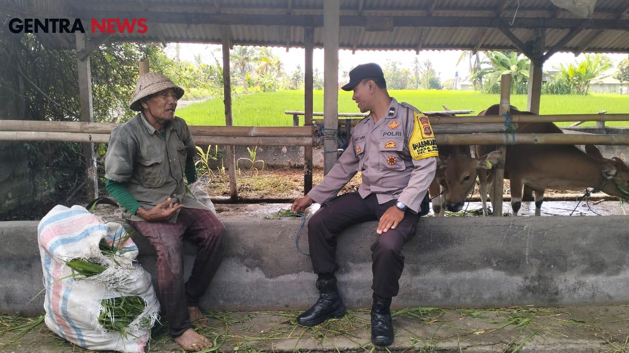 “Kami ingin mengetahui situasi dan informasi, selanjutnya mengingatkan kepada petani maupun peternak untuk menjaga keamanan serta kesehatan ternak miliknya” ujar Bhabinkamtibmas Belega.