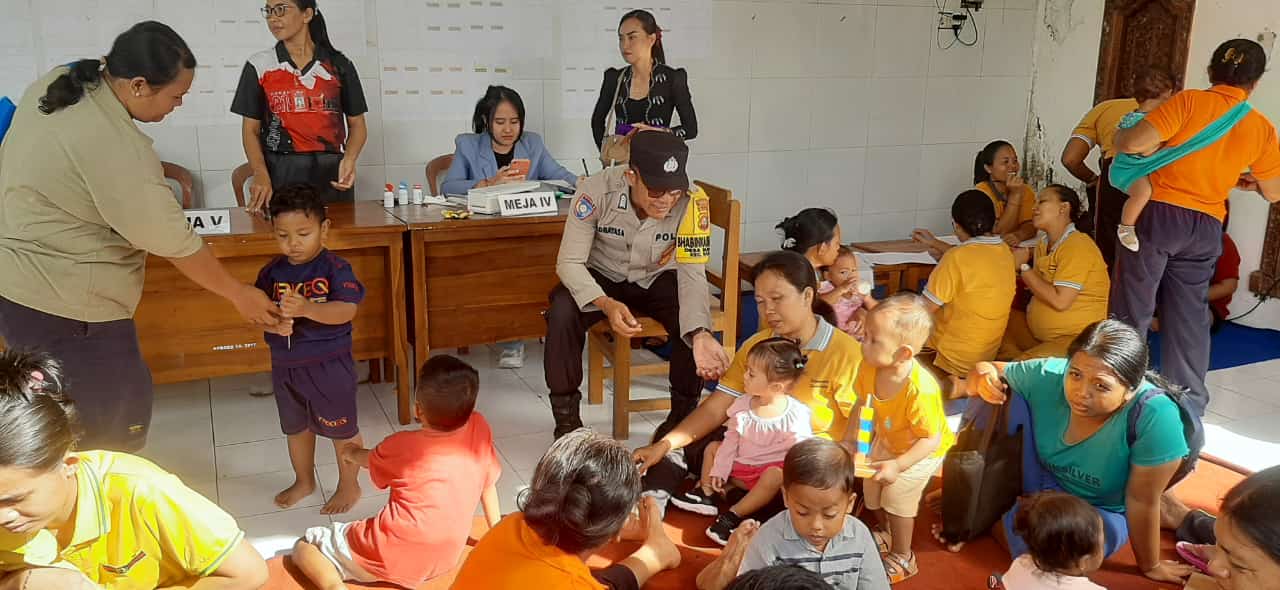 Sambangi Kegiatan Posyandu di Banjar Dukuh, Bhabinkamtibmas Berikan Himbauan Kamtibmas