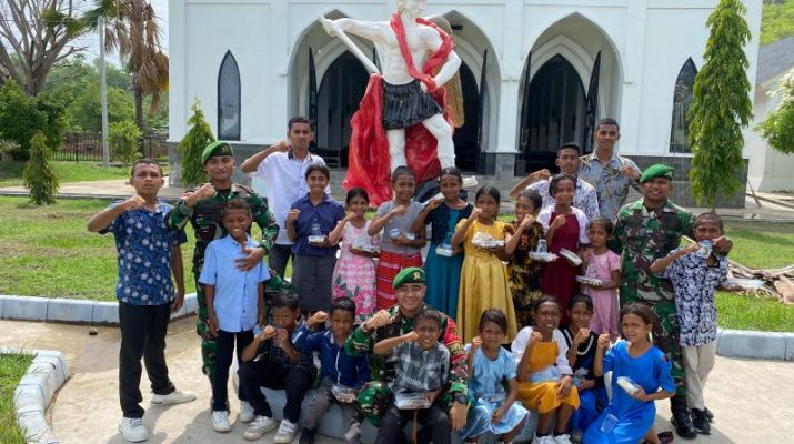 Gentra News NTT – Belu – Satgas Yonif 741/GN Pos Motaain berbagi kasih di Gereja St. Mikael Seroja, Dusun Seroja, Kecamatan Tasifeto Timur, Kabupaten Belu. Selasa (17/12/2024)