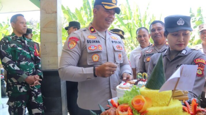 Diringi lagu selamat ulang tahun, Kapolsek Klungkung memberikan ucapan selamat ulang tahun TNI ke-80 kepada Danramil Kapten Cpl Putu Agus dan seluruh anggota TNI seraya menyerahkan tumpeng semakin menambah meriah suasana meski digelar dengan sederhana.
