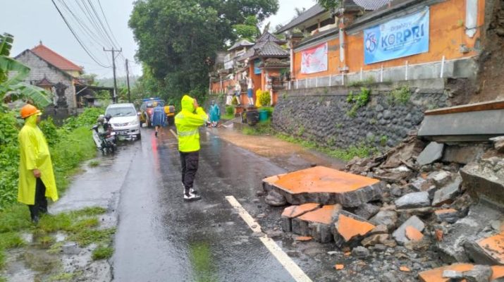 Seperti yang terjadi di SMP N 2 Dawan yang berlokasi di Desa Gunaksa, Dawan, Klungkung, tembok pembatas sebelah selatan sekolah mengalami roboh diakibatkan tanah lonsor dan menutup sebagian akses jalan raya (16/12/2024)