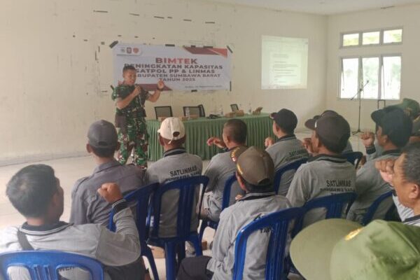 Sumbawa Barat – NTB, Upaya meningkatkan kapasitas pengamanan daerah kembali dilakukan Kodim 1628/KSB melalui kegiatan Bimbingan Teknis (Bimtek) Tata Cara Pelaksanaan Pengamanan bagi jajaran Sat Pol PP dan Linmas. Kegiatan tersebut berlangsung pada Rabu (19/11/2025) di Kantor Sat Pol PP Sumbawa Barat, Kelurahan Kuang, Kecamatan Taliwang.