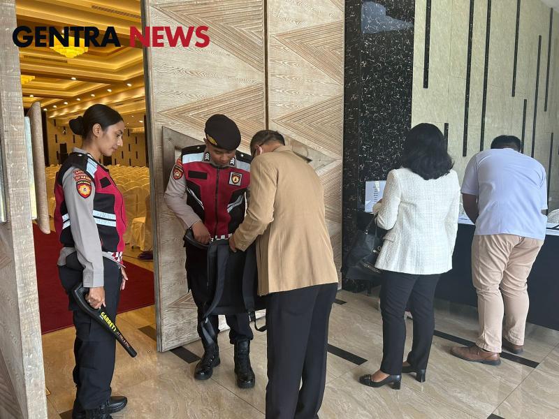 Pengamanan Satgas OMP dilaksanakan sejak pagi pukul 08.00 Wita diawalai dengan sterilisasi Ballroom lokasi giat dan sekitarnya hingga diyakinkan aman dari ancaman seperti bahan peledak dan lainnya.