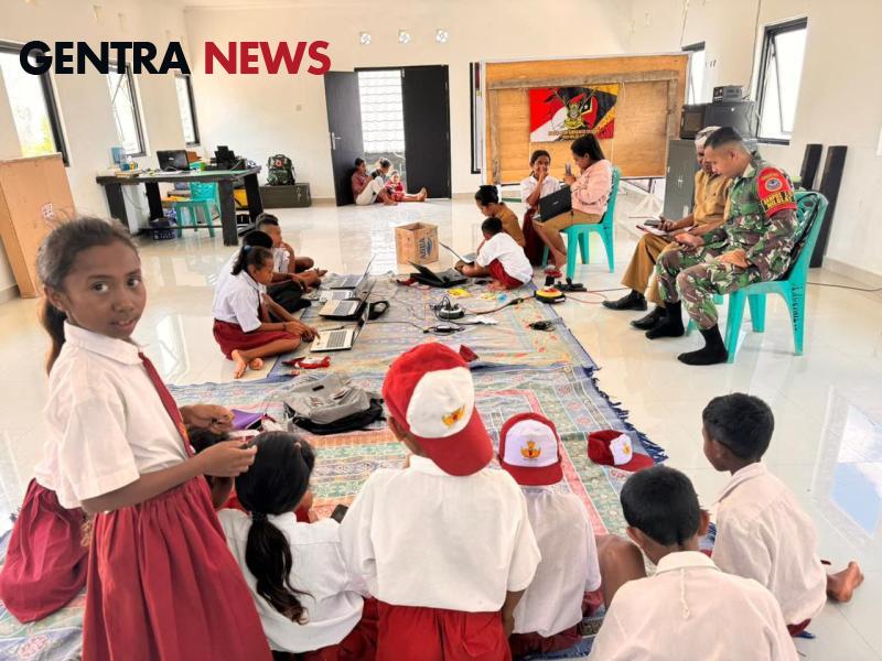 Gentra News Bali – TTU, 23 Oktober 2024 – Satgas Pamtas RI-RDTL Sektor Barat Yonarhanud 15/DBY SSK II Pos Nilulat, dipimpin oleh Danpos Serka Sigit Harseno bersama empat personel lainnya, melaksanakan kegiatan pengarahan dan pembelajaran bagi siswa kelas 5 SD Bikomi Nilulat di ruang aula Pos Nilulat, Rabu (23/10).