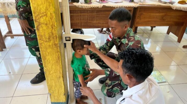 Satgas Pamtas RI-RDTL Yonarhanud 15/DBY menggelar Posyandu Balita yang bersinergi dengan Kader Posyandu Puskesmas Amfoang Timur di kantor Desa Netamnanu Utara, Minggu (31/08/2025).