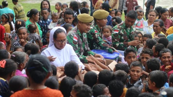 Dalam rangka Minggu Kasih, personel Satgas Pamtas RI-RDTL Yonarhanud 15/DBY Mako Satgas yang dipimpin oleh Letda Chk Richardus Risnu A, S.H. (Pahukum) ibadah Hari Minggu di Gereja tepatnya di Gereja Katolik St. Maria Diangkat Ke Surga, Desa Eban, Kec. Miomaffo Bar., Kabupaten Timor Tengah Utara, Nusa Tenggara Tim., serta membagikan snack kepada anak-anak sekolah minggu setelah kegiatan ibadah. Minggu (15/12/2024).
