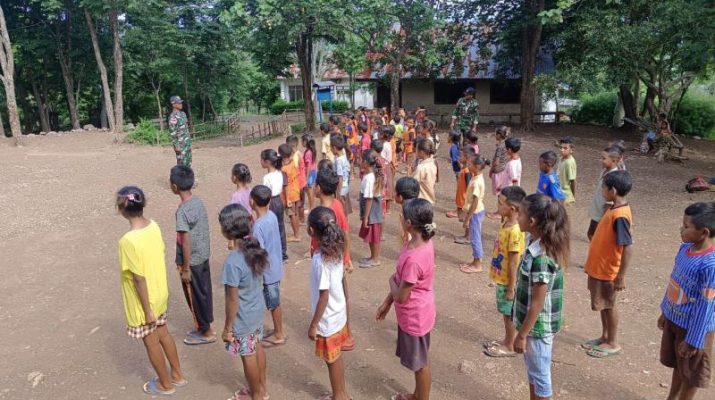 Satgas Pamtas RI-RDTL Sektor Barat Yonarhanud 15/DBY Dorong Pendidikan dan Nasionalisme di SD Oelbinose