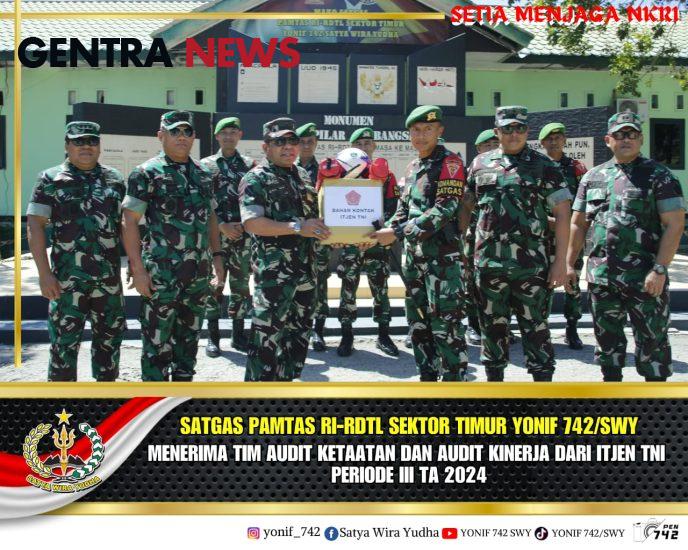 Kegiatan Audit merupakan bagian pengawasan dari Itjen TNI, tujuannya untuk mengecek kesiapan operasi, kondisi fisik dan dukungan operasi yang sudah diterima oleh Satgas Pamtas RI-RDTL Sektor Timur Yonif 742/SWY.