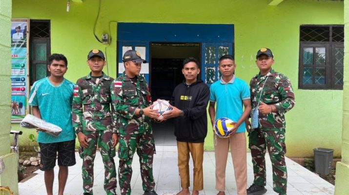 Sementara itu, Pos Inbate yang dipimpin oleh Wadanpos Sertu Apdilie melaksanakan penyerahan sarana olahraga berupa bola voli, bola kaki, dan jaring net voli kepada Sekretaris Kantor Desa Inbate, Bapak Janu, di Kecamatan Bikomi Nilulat, Kabupaten Timor Tengah Utara (TTU).