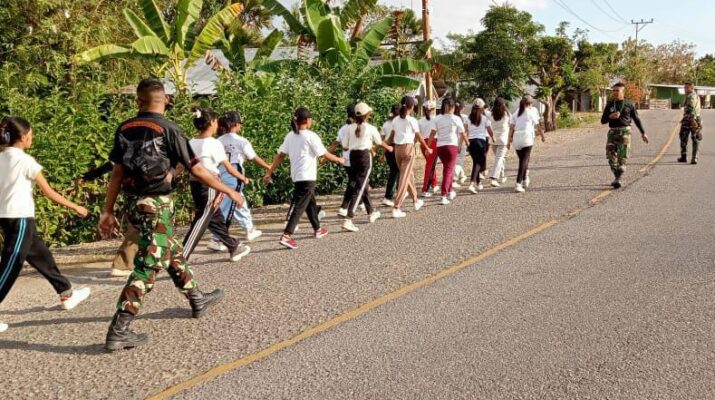 Belu – Pos Salore latihkan gerak jalan ibu PKK yang berada di Desa Tulakadi, Kecamatan Tasifeto Timur, Kabupaten Belu, Senin (04/08/2025).