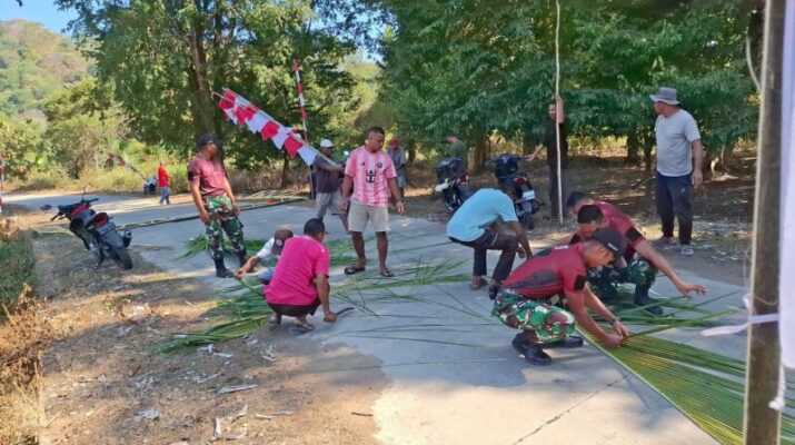 Belu – Pos Silawan laksanakan Karya Bakti bersama masyarakat setempat membuat gapura di Gereja Stela Maris di Desa Silawan, Kecamatan Tasifeto Timur, Kabupaten Belu. Rabu (30/07/2025).