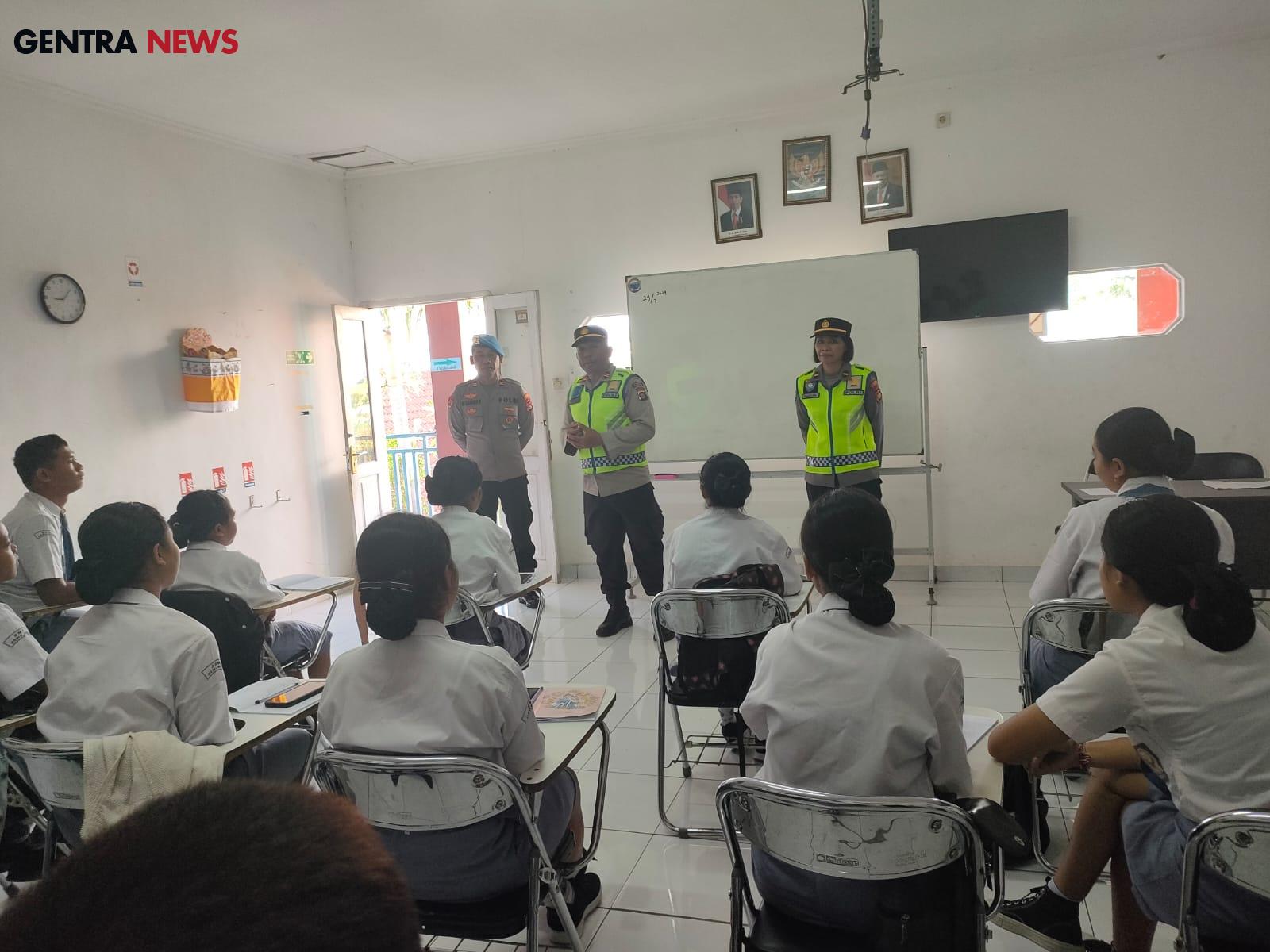 Kasubsatgas Binmas Iptu I Wayan Sukadana menyampaikan pesan- pesan Kamtibmas agar para siswa-siswi belajar dengan sungguh-sungguh, dan tidak terpengaruh hal-hal negatif seperti pergaulan bebas bahkan melakukan tindakan kenakalan remaja.
