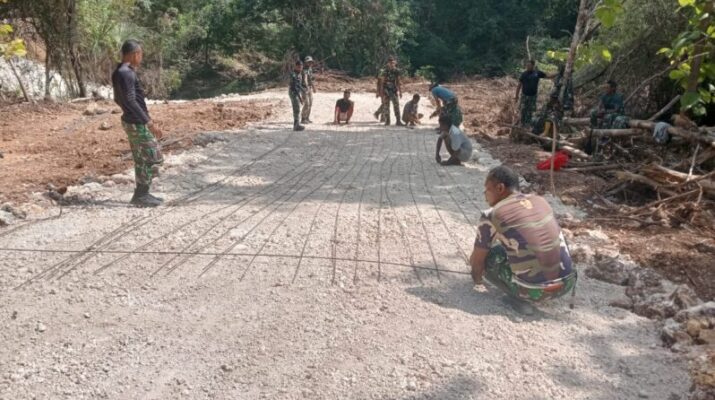 Gentra.co.id –NTT-KUPANG, Memasuki hari ke-14 program TNI Manunggal Membangun Desa (TMMD) ke-124, Satgas TMMD Kodim 1604/Kupang terus melanjutkan pekerjaan sasaran fisik I, yaitu pembukaan dan pengerasan jalan sepanjang 1,4 kilometer. Pembangunan jalan ini berada di wilayah Desa Huilelot, Kecamatan Semau, Kabupaten Kupang, dan menjadi prioritas untuk meningkatkan akses transportasi masyarakat setempat. Senin (19/05/2025).