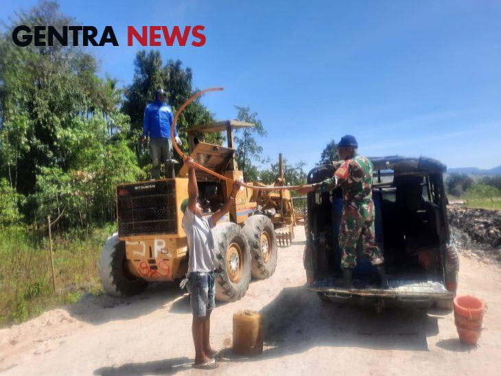 Gentra News NTT – KODIM 1605/BELU, Dalam memaksimalkan proses pengerjaan badan jalan, Satgas TMMD 121 Kodim 1605/Belu suplay bahan bakar untuk operasional penggunaan alat berat grader yang berlangsung di lokasi pembangunan jalan baru UPTD Desa Tniumanu, Kecamatan Laen Manen, Kabupaten Malaka NTT, Senin (19/8/2024).