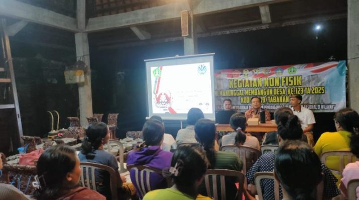 Gentra.co.id Bali – Tabanan – Dalam rangka mendukung program sasaran non-fisik, Satgas TNI Manunggal Membangun Desa (TMMD) ke-123 Kodim 1619/Tabanan menggelar sosialisasi tentang lingkungan hidup dengan menghadirkan narasumber dari Dinas Lingkungan Hidup (DLH) Kabupaten Tabanan, Ir. I Gusti Putu Ekayana, M.Si., yang memberikan pemahaman kepada masyarakat mengenai pentingnya menjaga kelestarian lingkungan. Bertempat di Wantilan Pura Puseh Adat Sarinbuana, Desa Wanagiri, Kec. Selemadeg, Kab. Tabanan, Senin (17/3/2025)