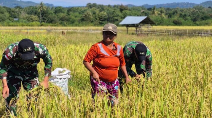 Gentra.co.id –Belu – Pos Asulait Satgas Yonif 741/GN bantu masyarakat Panen Padi di Dusun Banleten, Desa Umeklaran, Kecamatan Tastim, Sabtu (10/05/2025).