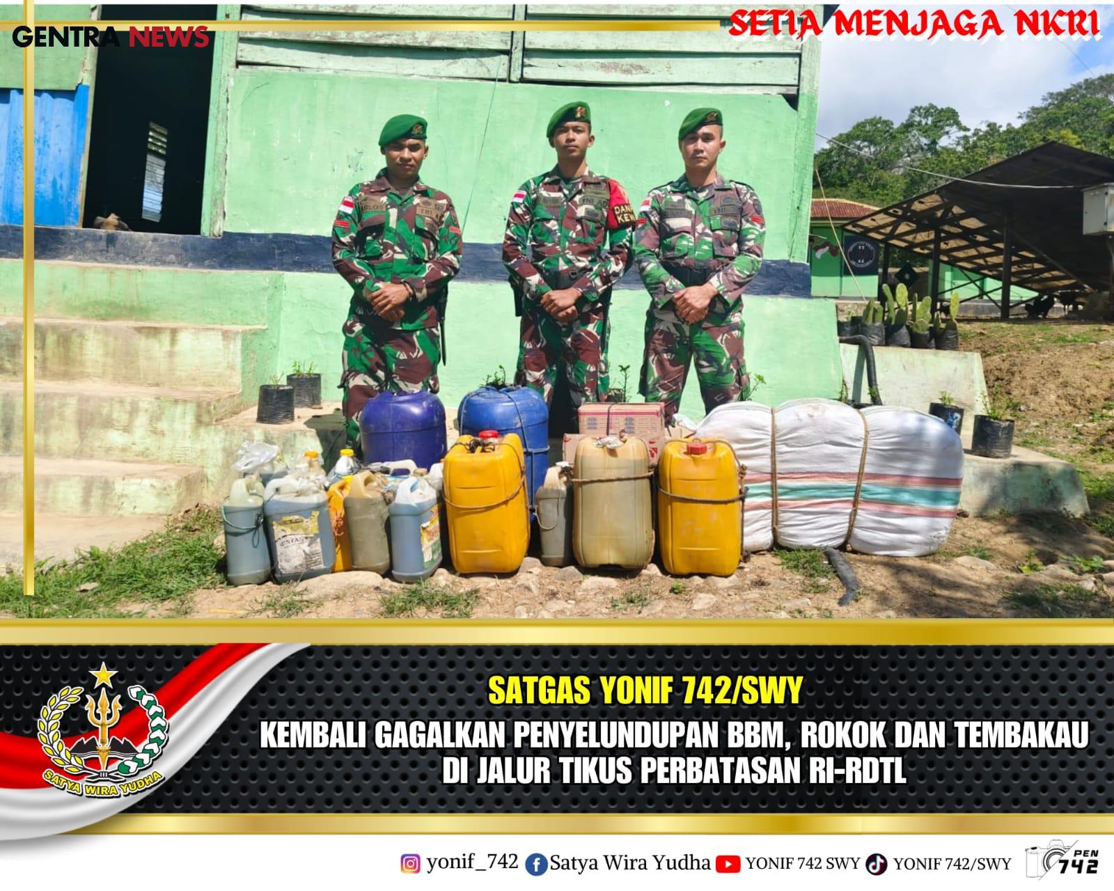 Gentra News NTT – Belu, Satgas Pamtas Yonif 742/SWY yang dipimpin Letkol Inf Trijuang Danarjati, S.A.P., kembali mengamankan barang ilegal di jalan tikus perbatasan RI-RDTL. Barang tersebut diduga akan diselundupkan ke Timor Leste, melalui jalan tikus yang berada di Desa Lakus, Kecamatan Lamaknen, sehingga diamankan oleh Tim ambush Pos Kewar Kipam II. Kamis (04/7/2024)