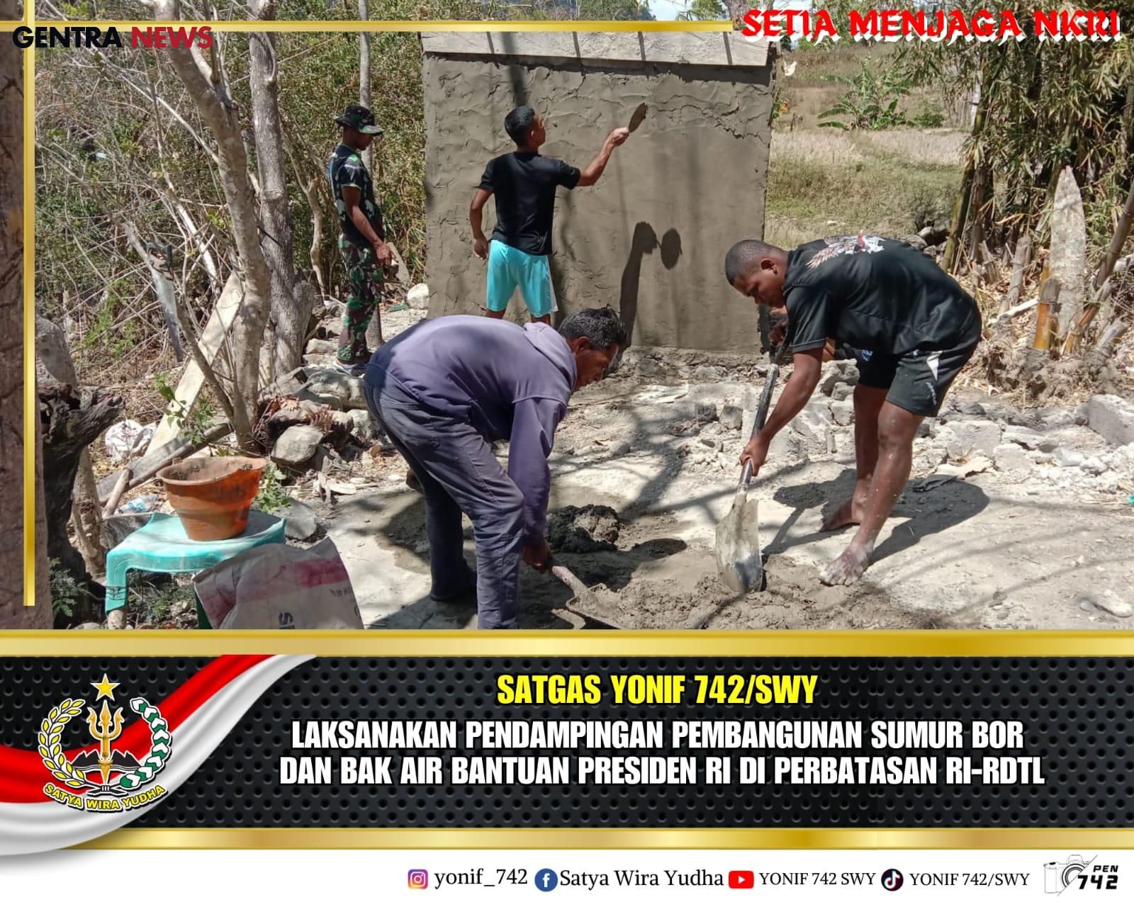 Gentra News NTT – Belu, Satgas Pamtas RI-RDTL Sektor Timur Yonif 742/SWY yang dipimpin Letkol Inf Trijuang Danarjati, S.A.P., M.I.P., (Dansatgas), berikan pendampingan pengerjaan sumur bor dan bak penampungan air bantuan Presiden RI Bapak Ir. H. Joko Widodo di wilayah perbatasan RI-RDTL. Jumat (23/8/2024)