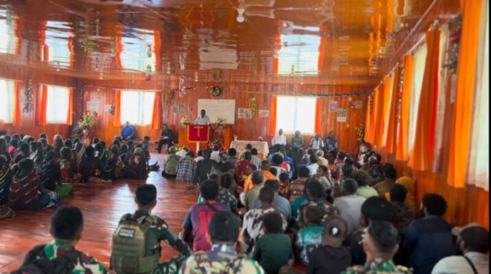 Sementara itu, Pendeta Danius Yoman menyampaikan rasa syukur atas kehadiran prajurit Satgas Yonif 743/PSY yang selalu mendukung pelayanan gereja serta menebarkan kasih di tengah jemaat.
