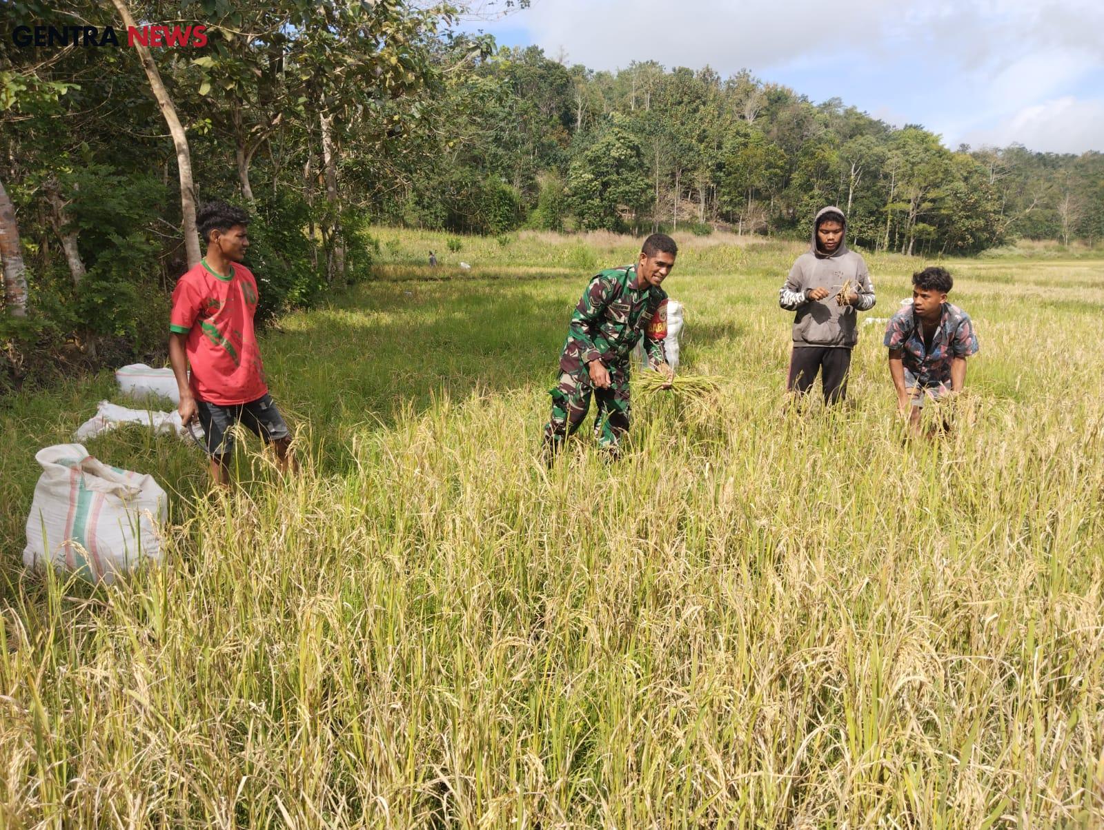Gentra News NTT – SUMBA BARAT, Babinsa Koramil 03/Katikutana Kodim 1613/Sumba Barat Serda Ananias Valentim panen Padi bersama warga binaan di Desa Umbu Riri Kecamatan Katikutana Kabupaten Sumba Tengah, Selasa (02/7/2024).