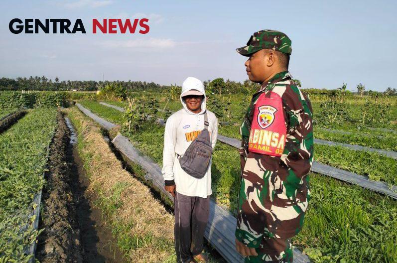 Gentra News Bali – Jembrana– Babinsa Kodim 1617/Jembrana Serda Yudi Siswanto aktif lakukan kegiatan pendampingan terhadap ketahanan pangan diwilayah binaannya, terkait hal tersebut kali ini Babinsa mengunjungi salah seorang petani Semangka, guna mendampingi pelaksanaan proses perawatan dan menunggu masa panen jenis tanaman semangka Inul dengan luas lahan berkisar satu Ha, bertempat di Subak Tagal Gintungan Lingkungan Bilukpoh, Kelurahan Tegal Cangkring, Kecamatan Mendoyo, Kabupaten Jembrana. Sabtu (05/09/2024)