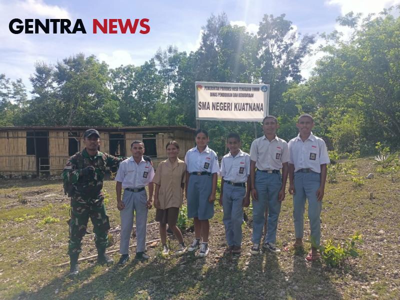 Gentra News NTT – kuatnana | Diselah-selah kesibukan Pengamanan Pilkada Serentak 2024 Bintara Pembina Desa (Babinsa) Kopda Samsul Mardani melaksanakan komsos dengan memberikan materi wawasan kebangsaan (Wasbang) kepada anak-anak SMA Kuatnana yang sedang melaksanakan proses belajar mengajar, Kamis (28/11/2024).