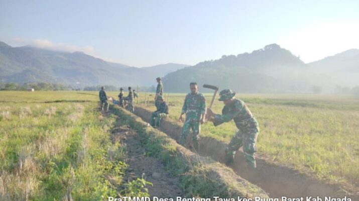 Ngada – Prajurit Kodim 1625/Ngada terus menunjukkan semangat pengabdian dalam kegiatan Pra TNI Manunggal Membangun Desa (Pra TMMD) yang berlangsung di Desa Benteng Tawa, Kecamatan Riung Barat, Kabupaten Ngada.