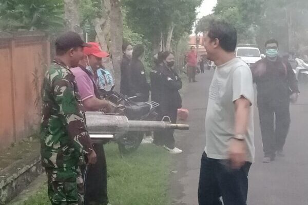Babinsa Semarapura Tengah Sertu Wayan Darwa menjelaskan, beberapa hari ini hujan mulai mengguyur Klungkung. Menyingkapi hal tersebut, pihaknya bergerak cepat untuk melaksanakan pencegahan timbulnya penyakit demam berdarah dengan melaksanakan fogging bersama Puskesmas Klungkung 2.