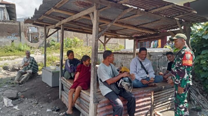 Ende, Babinsa Koramil 1602-01/Ende, Serda Damianus Kerhi, melaksanakan kegiatan Komunikasi Sosial (Komsos) dan Pengamanan Wilayah (Pamwil) di Pantai Bira Beah KM 03, Kelurahan Mautapaga, Kecamatan Ende Timur, pada Senin (6/10).