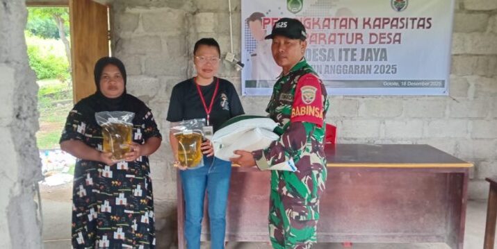 Ngada – Babinsa Koramil 1625-01/Bajawa terus menunjukkan komitmennya dalam mendampingi dan mengawasi berbagai kegiatan kemasyarakatan di wilayah binaan. Pada Sabtu, 20 Desember 2025, Babinsa Koramil 1625-01/Bajawa, Serda Faisal, melaksanakan kegiatan pemantauan pembagian bantuan sosial berupa beras dan minyak goreng kepada masyarakat di Desa Itejaya, Kecamatan Riung, Kabupaten Ngada.