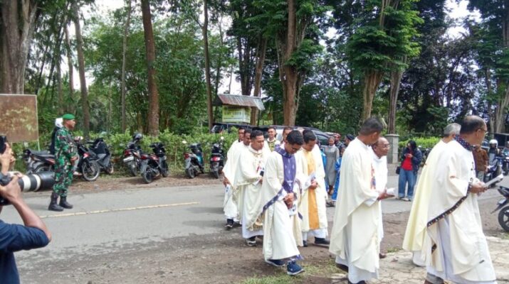 Nagekeo – Pada hari ini Jumat, 14 November 2025 pukul 09.00 Wita s.d selesai, Babinsa Koramil 1625-03/Boawae, Serka Hironis Epa Wea, melaksanakan kegiatan pengamanan pada acara Syukuran Misa Perdana Imam Baru Pater Piter Krisologus Bheo C.M.F. Kegiatan ini berlangsung di Gedung Serba Guna St. Clemens Boawae, Kelurahan Natanage, Kecamatan Boawae, Kabupaten Nagekeo.