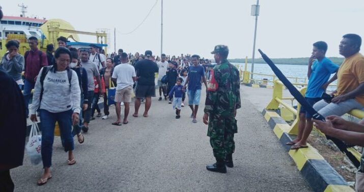 Rote Ndao – Babinsa Koramil di wilayah Pantai Baru, Sertu Andri Muskananfola, melaksanakan kegiatan pengamanan dan pemantauan aktivitas bongkar muatan kapal di Pelabuhan ASDP Pantai Baru, Desa Ofalangga, Kecamatan Pantai Baru, Kabupaten Rote Ndao, Minggu (4/1/2026).