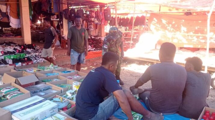 Ende – Babinsa Koramil 1602-04/Maurole, Sertu Denis Fernandes, melaksanakan kegiatan Komunikasi Sosial (Komsos) dan Pengamanan Wilayah (Pamwil) di Pasar Kohbo, Dusun Tana Dedu, Desa Niopanda, Kecamatan Kotabaru, Jumat (21/11/2025).