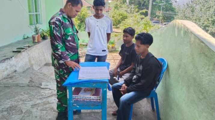 Ende, Babinsa Ramil 1602-01/Ende, Sertu Ersan, melaksanakan kegiatan Komunikasi Sosial (Komsos), Pengumpulan Data Teritorial (Puldata Ter), serta Pengamanan Wilayah (Pamwil) bersama para remaja di Lingkungan Ndao, Kelurahan Kota Ratu, Kecamatan Ende Utara, Kabupaten Ende, Jumat pagi (3/10/2025).
