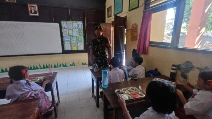 Gianyar – Senin (20/10/2025) Dalam rangka mendukung program pemerintah di bidang pendidikan dan peningkatan gizi anak sekolah, Babinsa Kelurahan Gianyar Koramil 1616-01/Gianyar Sertu I Made Mertayasa melaksanakan pendampingan kegiatan Pendistribusian Program Makan Bergizi Gratis (MBG) yang bekerja sama dengan Yayasan Anagata Tiga Tujuh Delapan. Dalam kegiatan ini, sebanyak 967 porsi makanan bergizi didistribusikan ke beberapa sekolah di wilayah Kecamatan Gianyar.