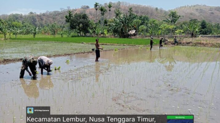 Dalam rangka mendukung ketahanan pangan di wilayah binaannya, Babinsa Desa Tulleng, Desa Lembur Timur, dan Desa Luba, Kecamatan Lembur, Sertu Isak Mauleti melaksanakan kegiatan pendampingan kepada masyarakat dalam proses penanaman padi. Kegiatan ini dilaksanakan pada Senin, 6 Oktober 2025, pukul 07.40 Wita bertempat di lahan sawah milik Bapak Otniel Lanfa di wilayah Pakilai Barat.