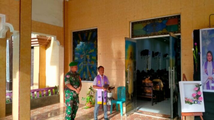 Dalam pelaksanaan kegiatan, Sertu Markus Anin melakukan pengawasan di sekitar area gereja, mengatur ketertiban, serta berkoordinasi dengan pengurus gereja guna memastikan jalannya ibadah berlangsung lancar, aman, dan tertib tanpa adanya gangguan.