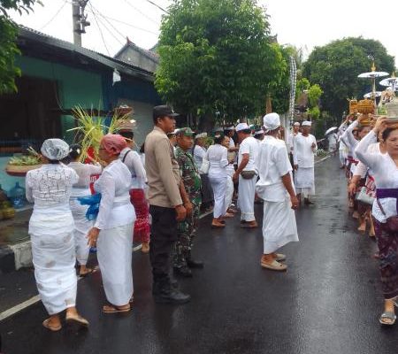Tampak pula ditengah ratusan warga dan gerimisnya hujan, Babinsa Semarapura Kelod Sertu Putu Pariadnya bersama Bhabinkamtibmas dan pecalang ikut serta mengawal dan membantu pengamanan kegiatan tersebut.