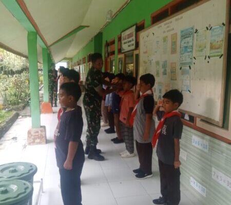 Sumbawa Barat – NTB, Dalam rangka membentuk kedisiplinan serta karakter generasi muda sejak dini, Babinsa Desa Sapugara Bree, Koramil 1628-01/Taliwang, Sertu Syarifudin bersama rekannya Sertu Septi Candra memberikan pelatihan Peraturan Baris Berbaris (PBB) kepada siswa-siswi SDN Sapugara, Kecamatan Brang Rea, Rabu (24/09/2025).