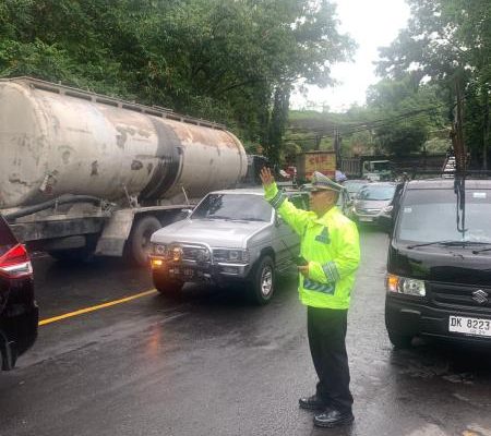 “Pengaturan arus lalu lintas kami lakukan dengan penuh kehati-hatian untuk menjaga keselamatan pengendara dan memastikan situasi tetap kondusif. Kami juga berkoordinasi dengan pihak PLN dan PT Pendor agar tiang listrik yang tumbang segera ditangani,” ungkap AKP I Made Adi Sutapa.