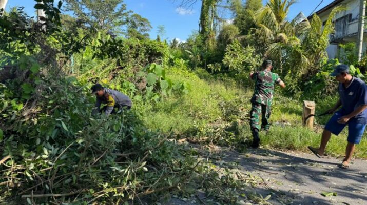 Gianyar – Selasa (1/10/2025), peran aktif Babinsa kembali terlihat nyata di tengah masyarakat. Babinsa Desa Saba, Koramil 1616-04/Blahbatuh, Pelda I Dewa Gede Agus Sastrawan dengan sigap turun langsung mendampingi tim BPBD Kabupaten Gianyar dalam melaksanakan pemotongan dan pembersihan pohon canging atau pohon berduri yang tumbang dan menutup akses utama Jalan Raya Pantai Saba, Desa Saba, Kecamatan Blahbatuh, Kabupaten Gianyar.