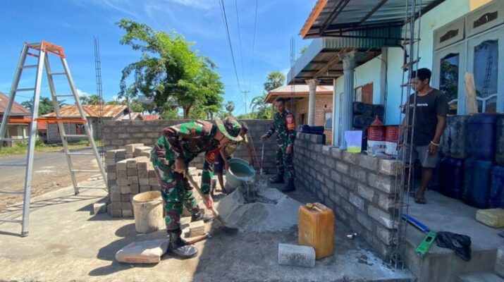 Flotim – Guna terciptanya sinergitas TNI bersama rakyat, Babinsa Koramil 1624-02/Adonara, Pratu Fernanda Tasrip melaksanakan karya bakti membantu membuat untuk pembangunan rumah milik warga binaannya di Desa Terong, Kecamatan Adonara Timur, Kabupaten Flores Timur, Senin (09/06/2025).