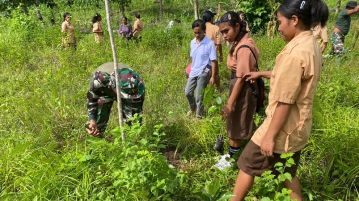 Sinergi TNI dan Pelajar: Kodim 1625/Ngada Hijaukan Sekolah dan Kawasan Bendungan Panondiwal