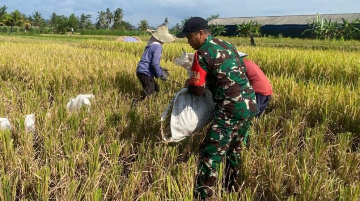 Hal ini kembali diwujudkan satuan dibawah pimpinan Dandim Letkol Kav Sidik Pramono, S.Sos., M.M., M.Han dengan aksi nyata melalui Babinsa Nyanglan Koramil 1610-02/Banjarangkan Serda Kadek Dwi Awan saat turun ke sawah membantu petani melaksanakan panen padi pada, Kamis ( 18/12/25 ).