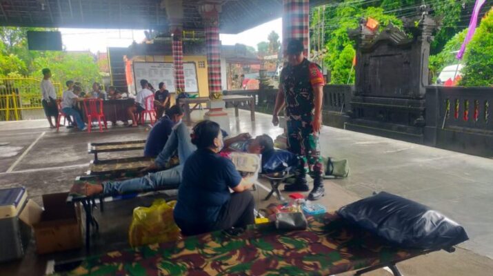 Klungkung, – Babinsa Semarapura Kaja Serka I Wayan Wardana melaksanakan pendampingan kegiatan donor darah yang digelar STT Ke 43 Tunjung Mekar Lingkungan Besang Kangin, Kelurahan Semarapura Kaja, Kecamatan/Kabupaten Klungkung, Sabtu ( 27/12/25 ).