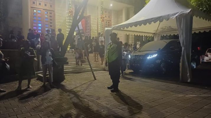Kapospam Ungasan bersama Bhabinsa TNI dan pecalang dikerahkan untuk memastikan jalannya ibadah yang dihadiri oleh 300 jemaat berlangsung aman dan kondusif. Kegiatan dimulai pukul 19.00 WITA dengan tema “Christmas Celebration 2024: Son of Man” yang dipimpin oleh Pendeta Timotius Arifin Tedjasukmana. Suasana ibadah berlangsung khidmat hingga selesai.