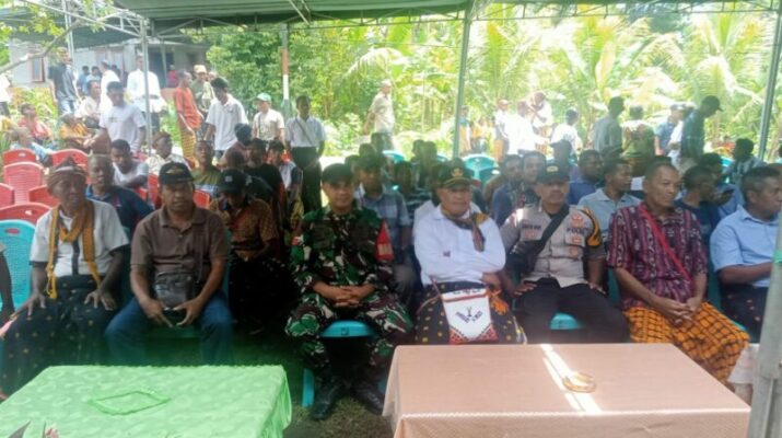 Nagekeo – Pada hari Senin, 08 Desember 2025, Babinsa Koramil 1625-04/Mauponggo Posramil Keo Tengah, Praka Boanerges Pay, bersama Kapospol Keo Tengah menghadiri undangan acara adat penyerahan lokasi sumber air minum dari pemilik lahan Kampung Tonga Tiwe Desa Wajo Timur kepada masyarakat Kampung Puwada Desa Wajo.