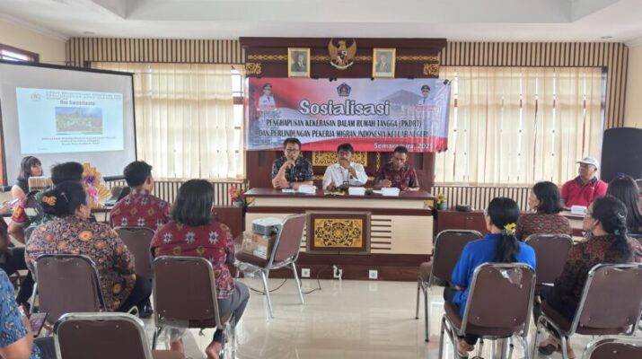 Klungkung,- Bertempat di ruang rapat Kantor Desa Tohpati, Kecamatan Banjarangkan, Kabupaten Klungkung, Pemerintah Desa Tohpati bersama Babinsa dan Bhabinkamtibmas menerima sosialisasi Penghapusan Kekerasan Dalam Rumah Tangga ( PKDRT ) dan Perlindungan Pekerja Imigran Indonesia ( PPMI ) yang diselenggara oleh Dinas Sosial Kabupaten Klungkung.