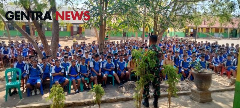 Gentra News Bali – Babinsa Desa Watukawula Koramil 01/Laratama jajaran Kodim 1629/SBD Sertu Yoris Mere memberikan Sosialisasi, dan informasi serta pengarahan tentang anti perundungan dan kekerasan kepada Siswa-siswi SMPN 3 Tambolaka bertempat di Halaman Sekolah SMPN 3 Tambolaka, Kota Tambolaka, Kabupaten Sumba Barat Daya, Senin (28/10/2024).