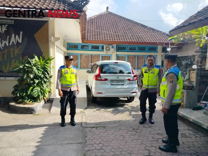 Personel Polres klungkung yang terlibat dalam Operasi Mantap Praja Agung (OMP) Tahun 2024 dari Sub Subsatgas Pam Kantor Penyelengara Pemilu, Satgas Preventif melaksanakan pengamanan ke Kantor Bawaslu (Badan Pengawas Pemilu) Kabupaten Klungkung yang beralamat di Jalan Raya Takmung, Banjarangkan, Klungkung (22/10/2024).